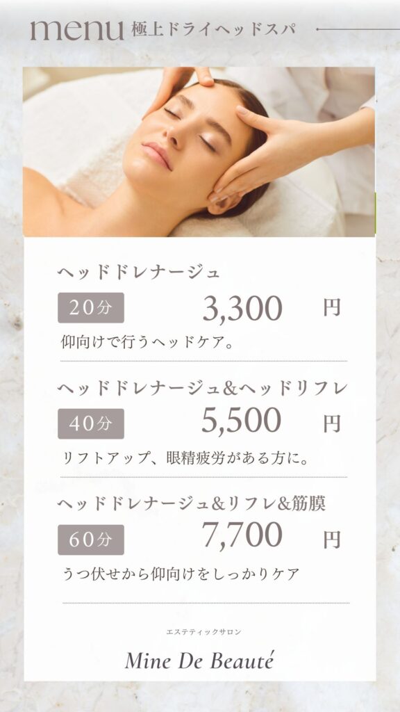 ◎仰向けでOK: ヘッドやネック、デコルテケアなど、仰向けのままで受けられるオプションも豊富にご用意しています。